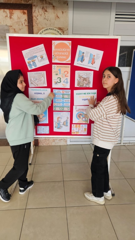 Okulumuzda iş sağlığı ve güvenliği eğitimi hakkında okul personel ve öğrencilere sunumlar yapıldı, pano hazırlandı.